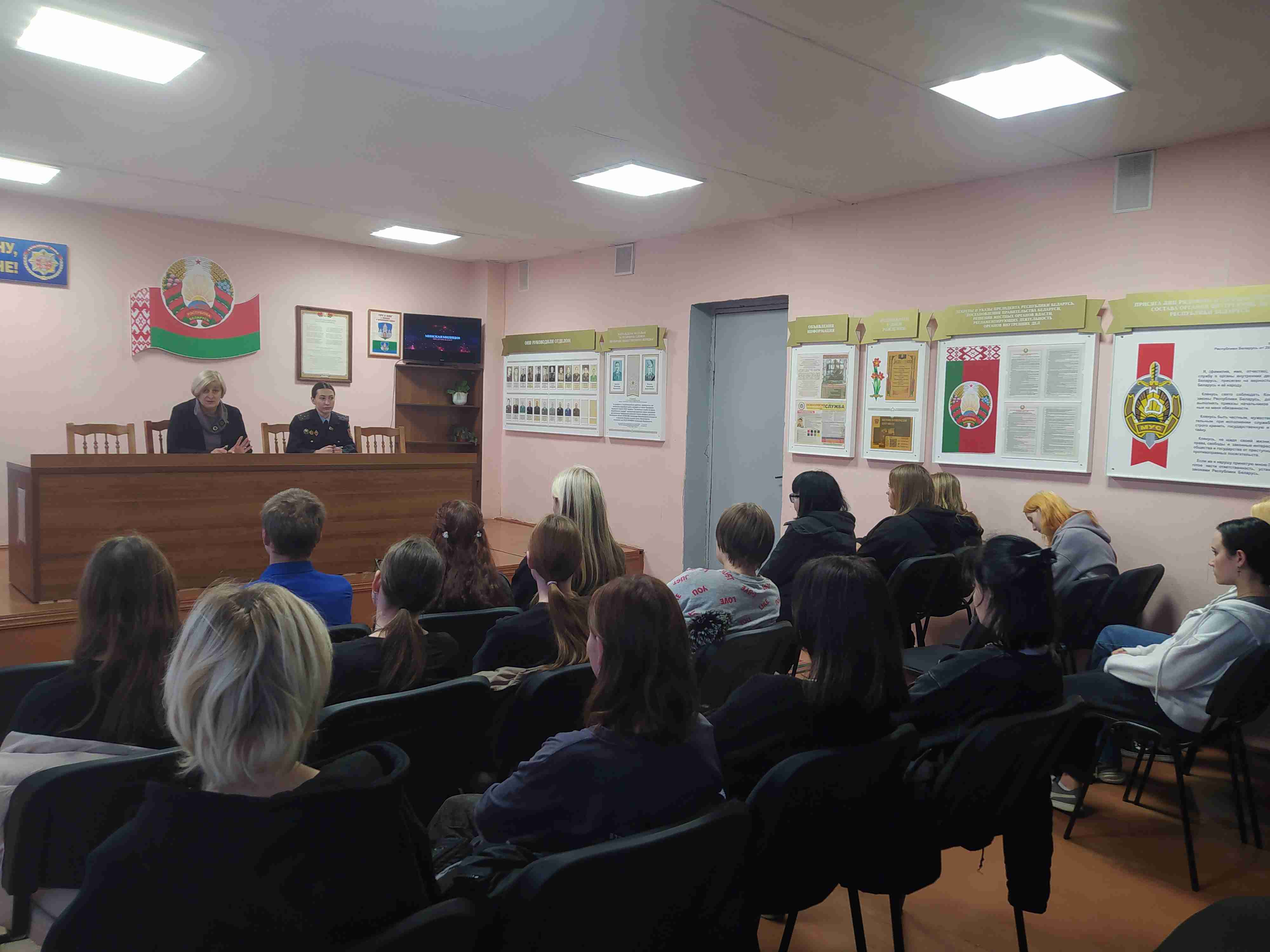 С таким посылом с группой учащихся колледжа на базе Чериковского РОВД встретились старший инспектор ИДН Столярова М.В. и заместитель председателя КДН Чериковского райисполкома Воднева Т.М. В ходе диалога с учащимися обсуждались вопросы законопослушного поведения, в том числе предупреждение правонарушений, выражающихся в использовании нецензурной брани в общественных местах, употребления алкогольных напитков, наркотических средств, курения и многое другое. По окончанию мероприятия для учащихся была организована экскурсия по зданию РОВД. |