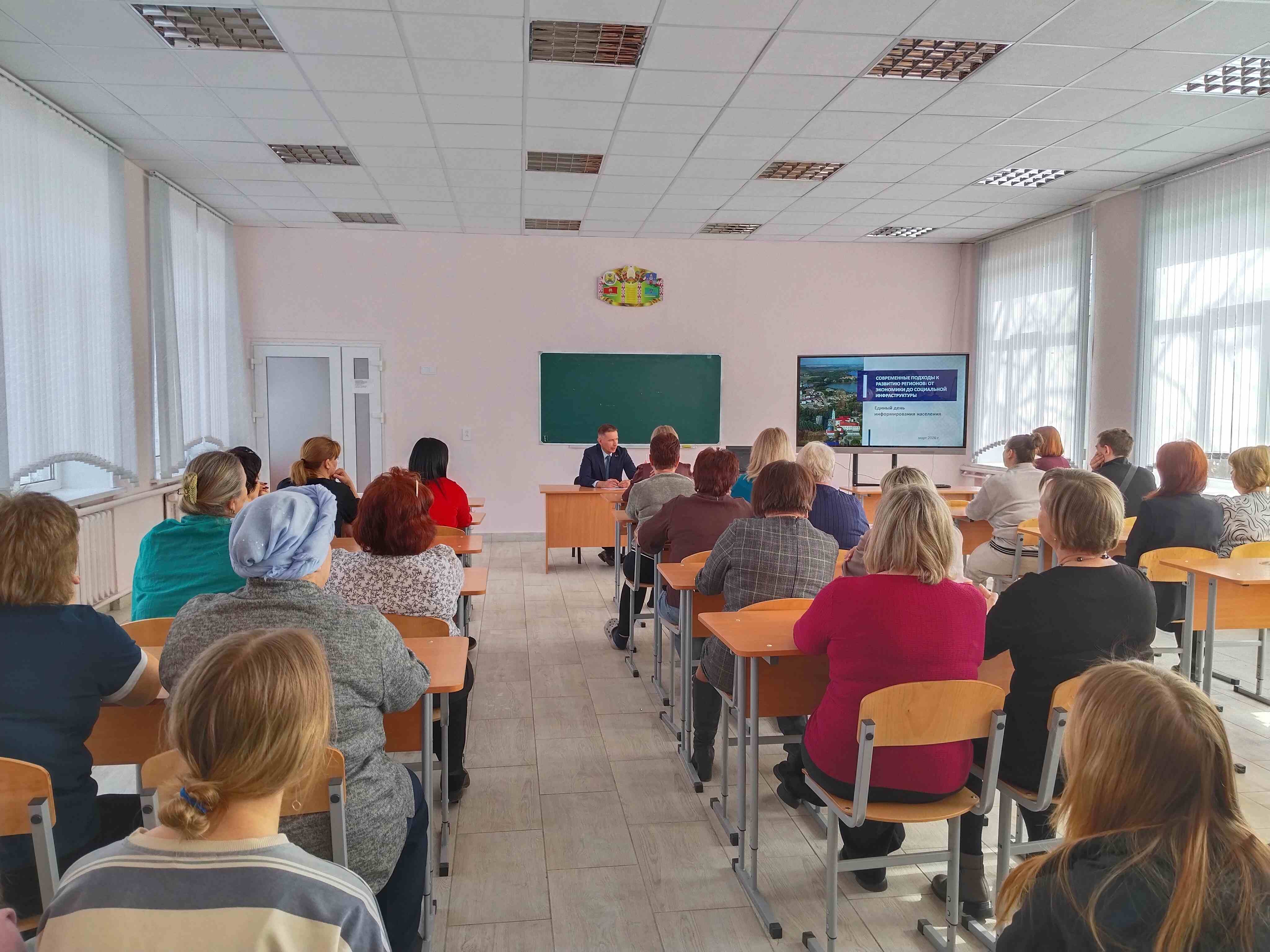 В рамках проходившего Единого дня информирования с трудовым коллективом колледжа, а также учащимися старших курсов провел встречу начальник управления по преодолению последствий катастрофы на чернобыльской АЭС, чрезвычайным ситуациям Могилевского облисполкома Лазаревич С.С. Сергей Святославович ознакомил аудиторию с материалами по основному вопросу ЕДИ «Современные подходы к развитию регионов: от экономики до социальной инфраструктуры». |