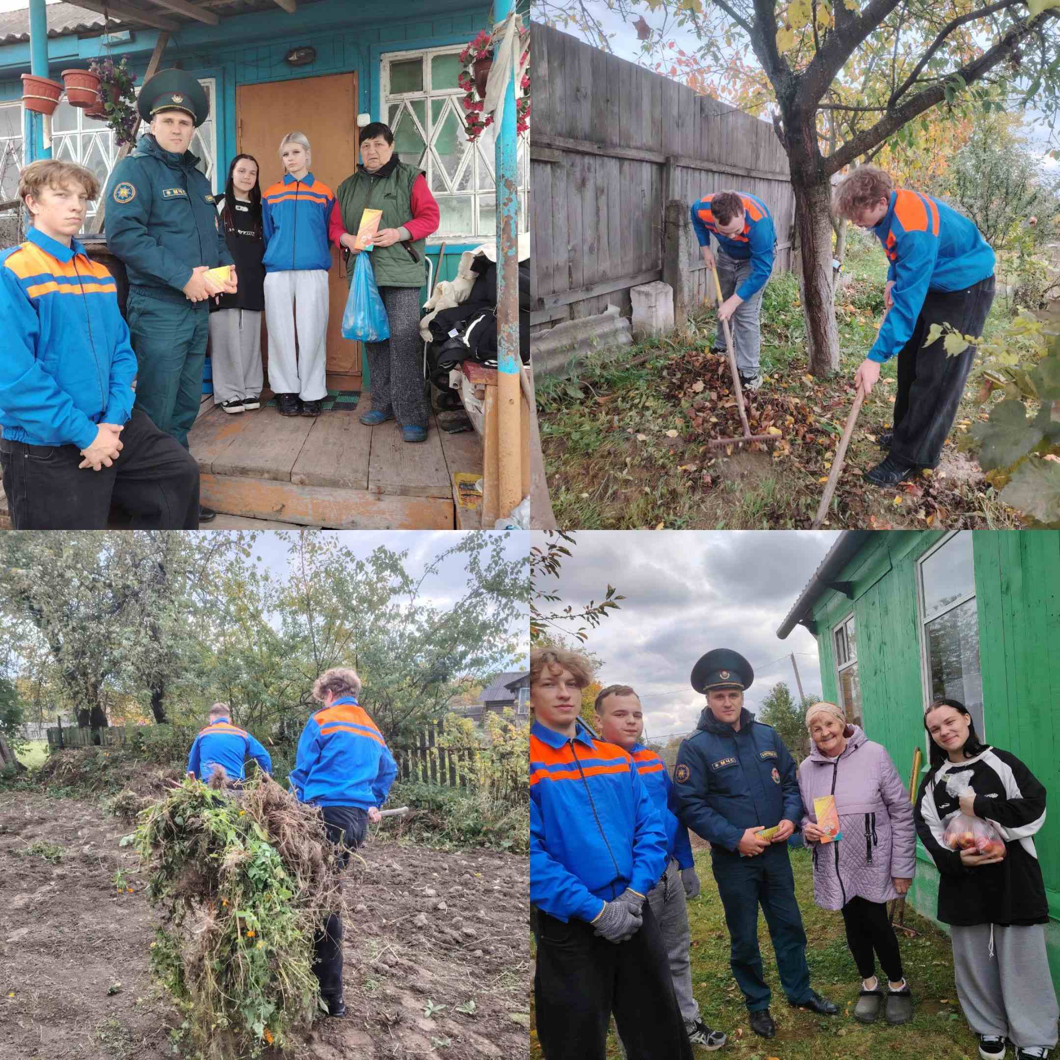 Члены районного отделения БМООСП из числа учащихся колледжа под руководством своих старших товарищей из Чериковского РОЧС оказали помощь ветеранам труда в уборке придворовой территории и огорода, также ребята не забыли раздать памятки по пожарной безопасности в осенне-зимний период. |