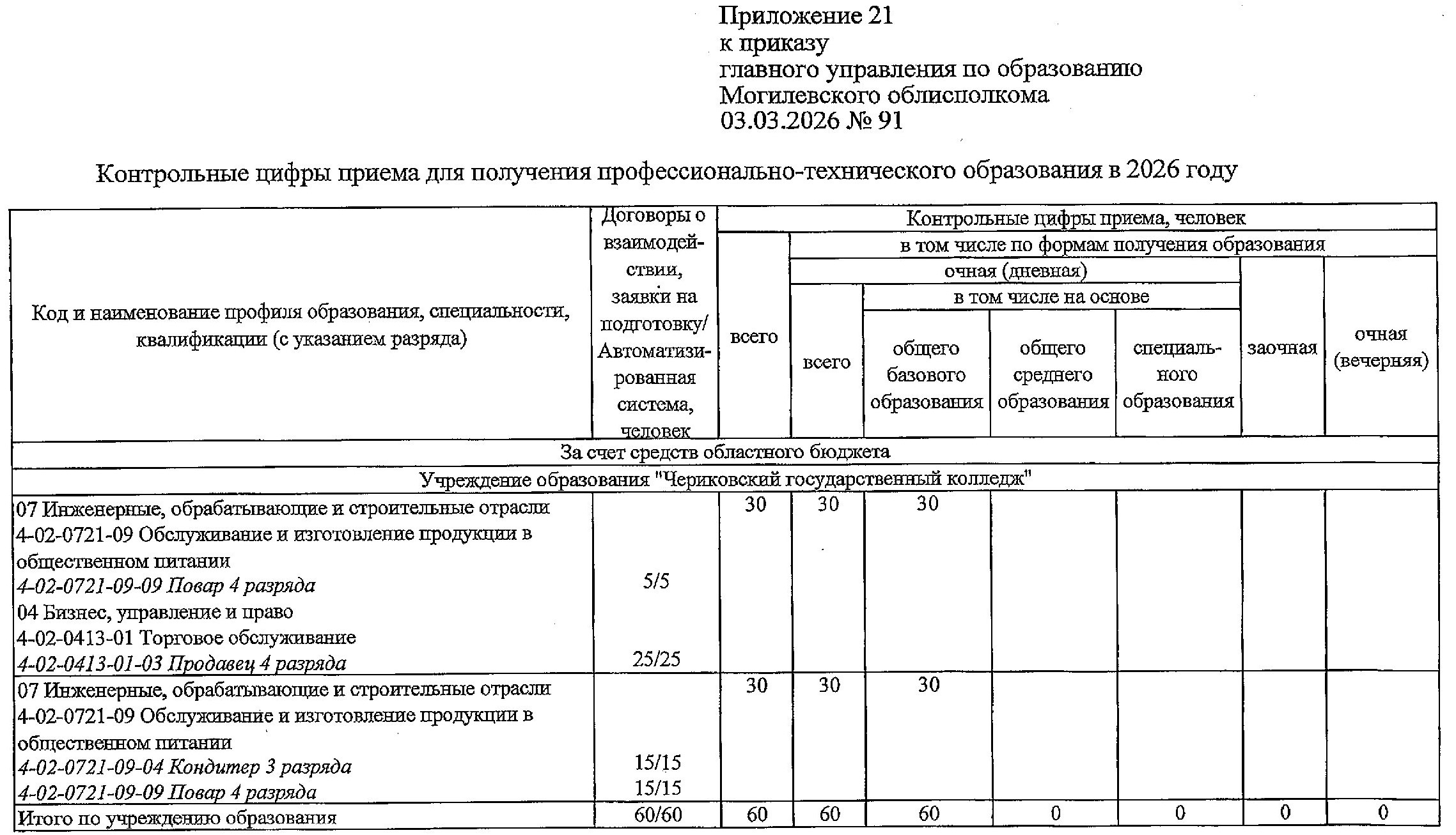 Зачисление в учреждение образования на уровень ПТО осуществляется на основании заявлений поступающих. Если количество поданных заявлений на конкретную специальность будет превышать установленные по ней контрольные цифры приема, то зачисление будет осуществляться по конкурсу на основании среднего балла документа об образовании.