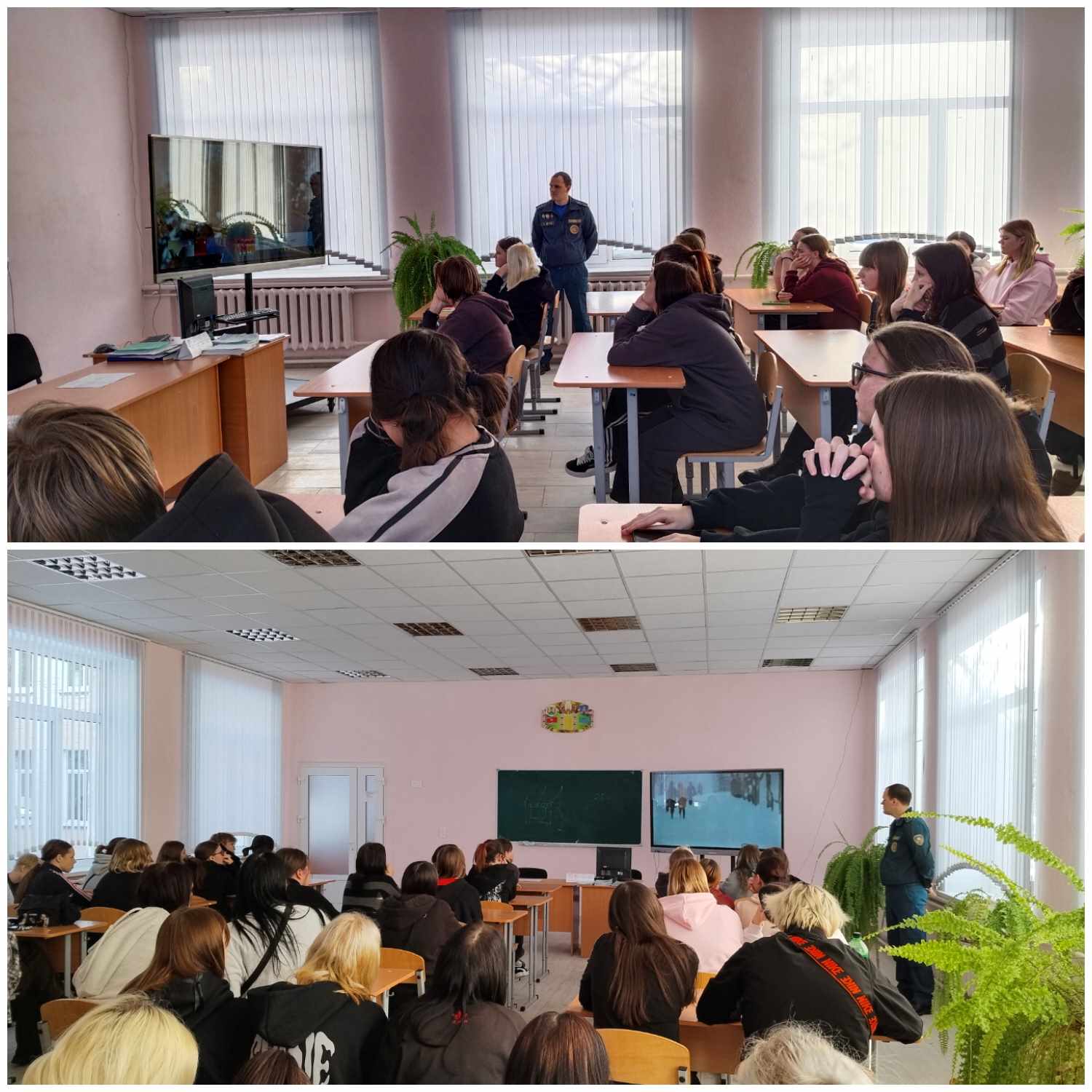 С учащимися колледжа провел занятия по безопасности в преддверии новогодних каникул в рамках акции «Безопасный Новый год» инспектор отдела по вопросам пропаганды и работы с общественностью Чериковского РОЧС Игорь Бирюков. Игорь Сергеевич обсудил с ребятами вопросы безопасного поведения в зимний период, соблюдения правил пожарной безопасности, поведения вблизи водоемов, в том числе при образовании льда, оказания помощи пострадавшим, а также порядка действий при возникновении чрезвычайных ситуаций. Ребята с удовольствием поучаствовали в онлайн-викторине по безопасности жизнедеятельности.